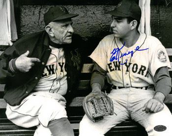Ed Kranepool spent his entire Major League Baseball career as a first baseman for the New York Mets. The Mets completed their remarkable "Miracle" 1969 season, in which the team, backed by Kranepool, Tom Seaver and Jerry Koosman, won their first ever World Series title against the Baltimore Orioles. Kranepool hit a home run in game three of the series, a 5-0 win for the Mets. Ed Kranepool has hand signed this New York Mets 8x10 Vintage B&W Photo with Casey Stengel. Leaf Authentics Hologram and Certificate of Authenticity from Athlon Sports.