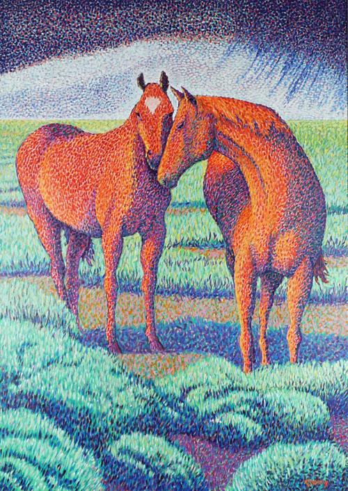 Ed McCarthy (1957 - ) Oil on Canvas "Red Horses" Signed lower right 40" x 30"