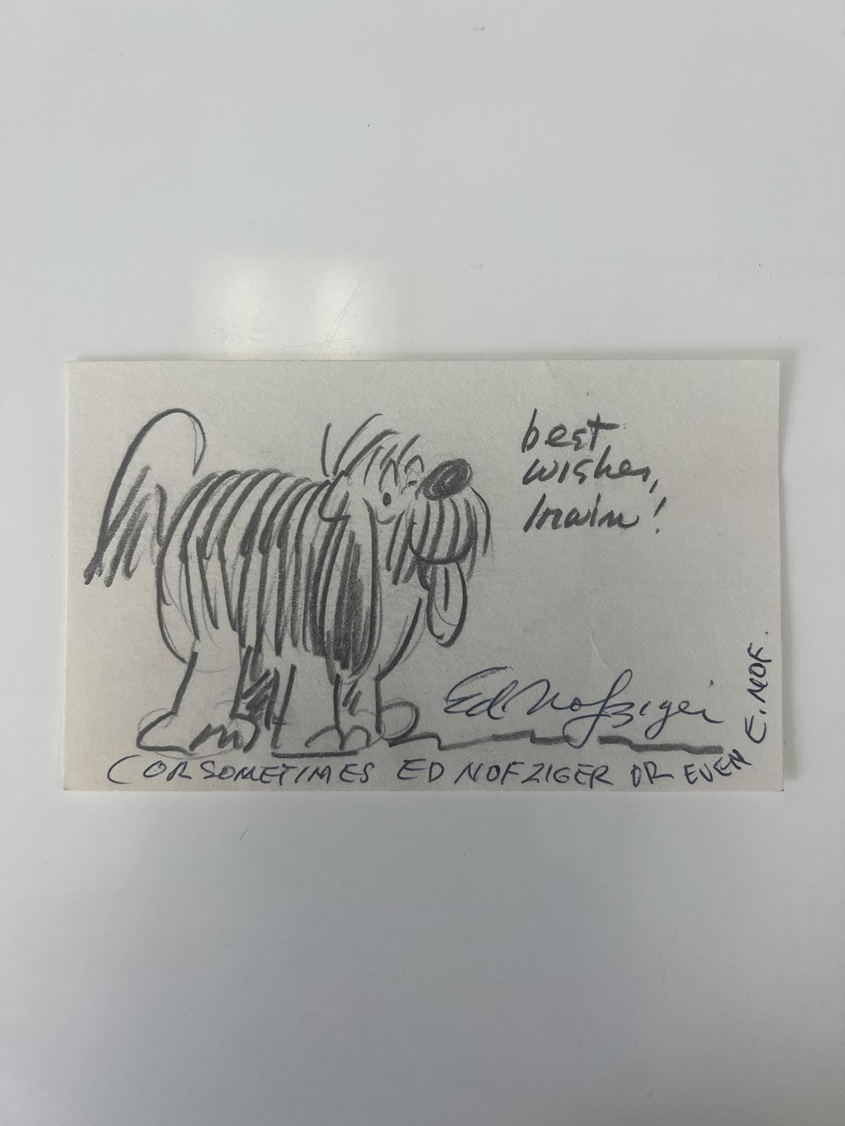 Ed Nofziger hand drawn and signed sketch. 3x5 inches