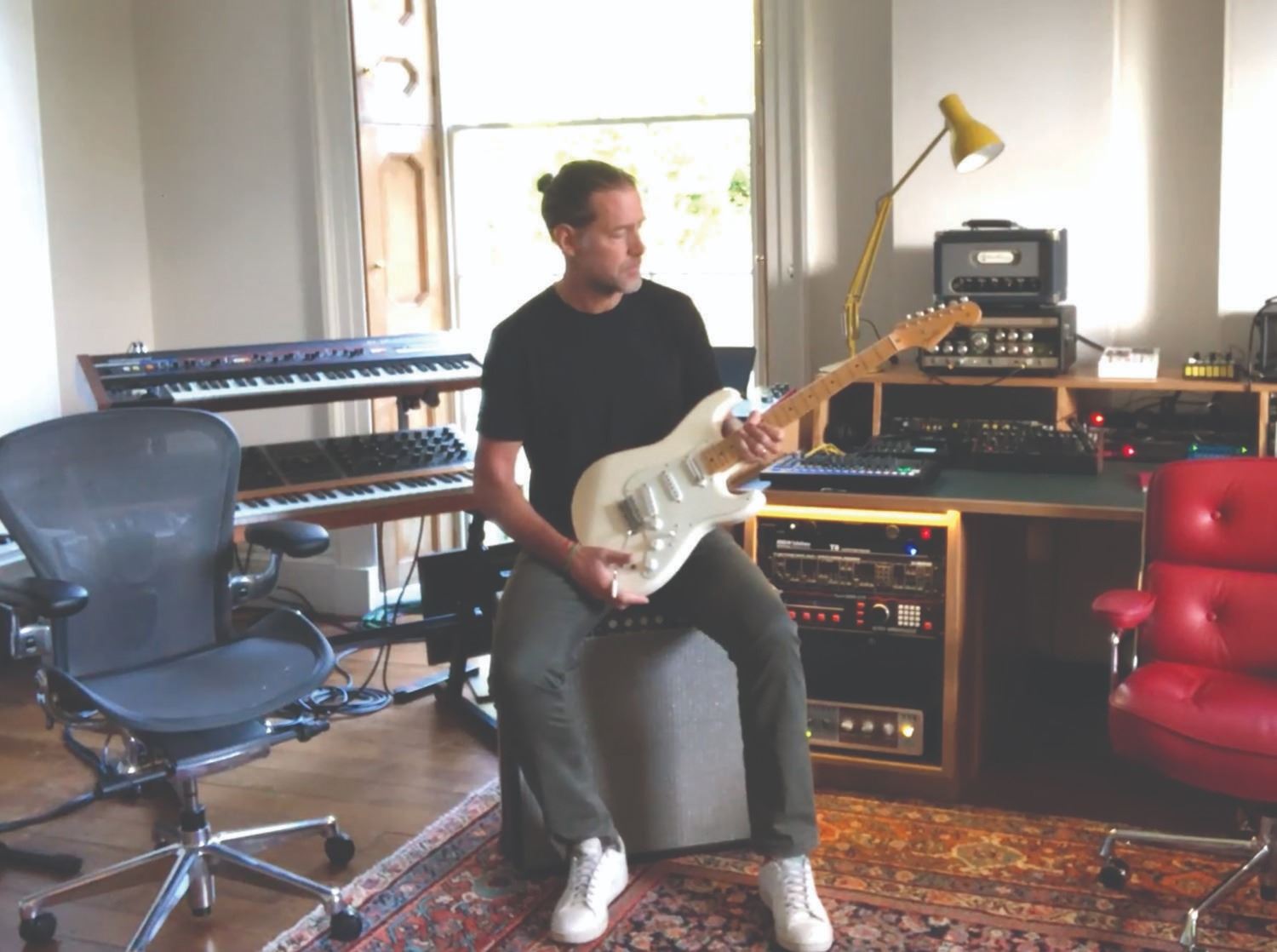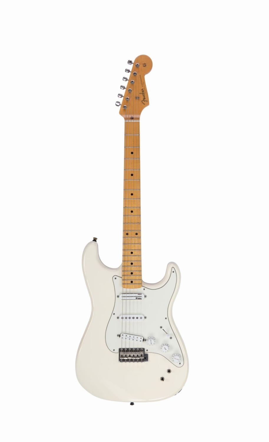 Ed O'Brien's personal Sustainer Stratocaster of his own signature edition. The guitar was hand-built for O'Brien by Alex Perez, who worked with him to develop this guitar.