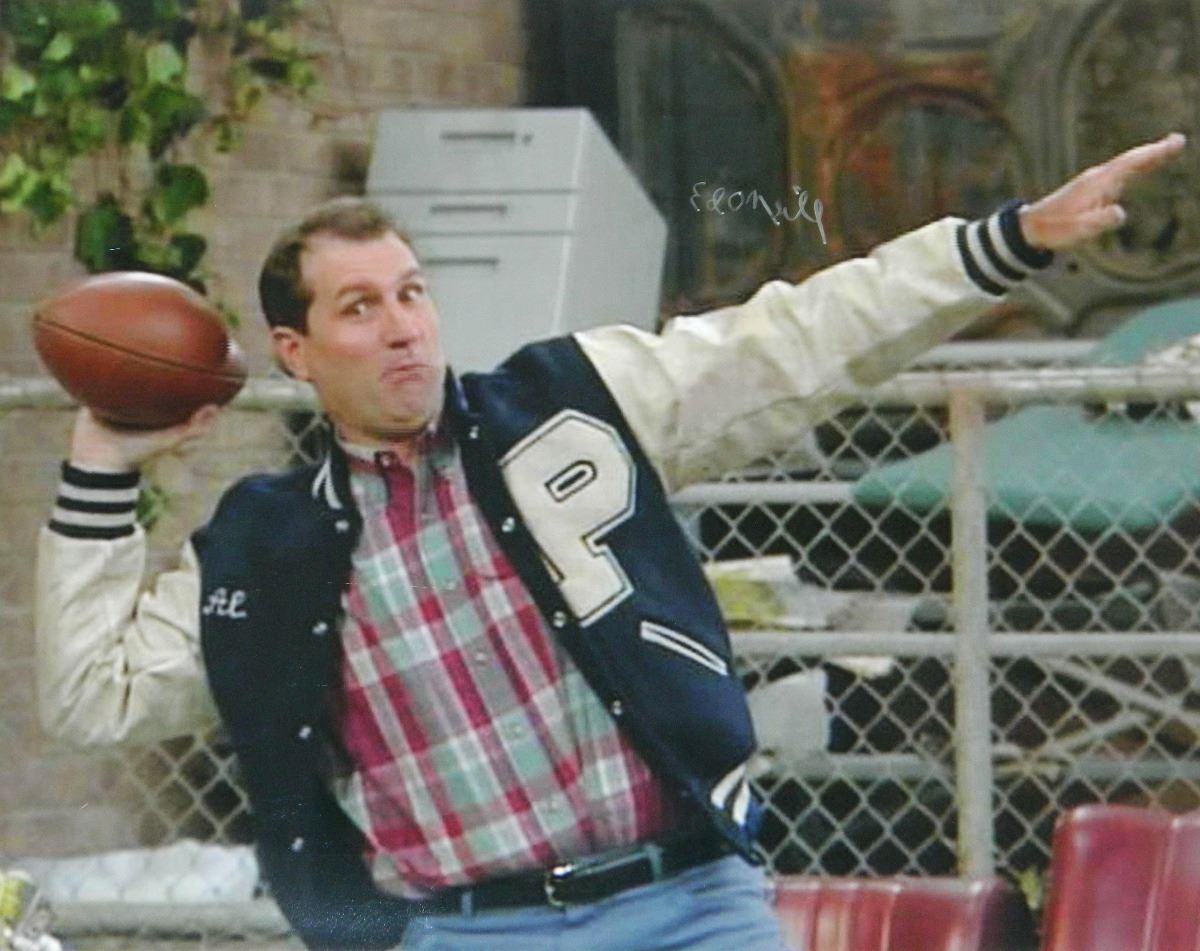 Ed O'Neill signed Married With Children football touchdown pose 16x20 photo. Item comes with a Schwartz Sports Memorabilia tamper-proof numbered hologram and Certificate of Authenticity which can be verified online.