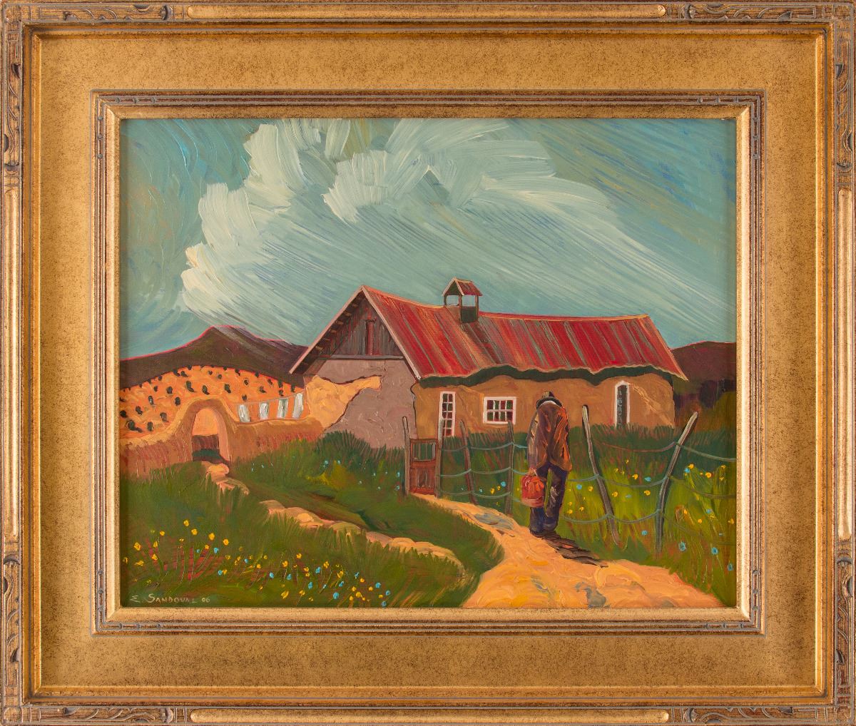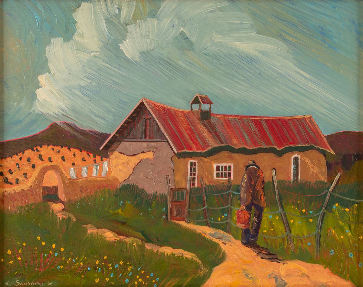 Ed Sandoval (20/21st centuries). Home from Market. 16" x 20" oil on canvas. Signed and dated '06 lower left.