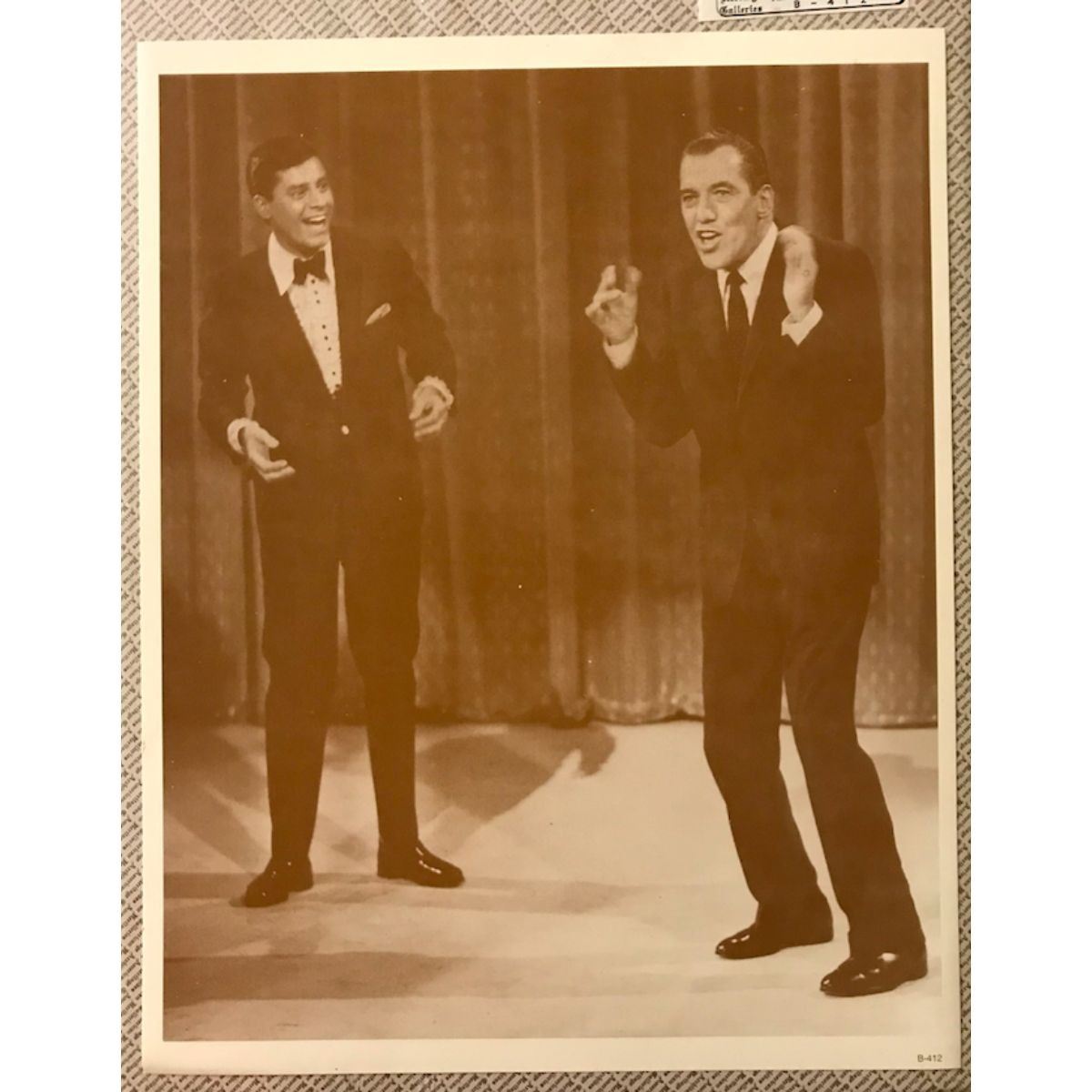 Ed Sullivan Show with Jerry Lewis sepia tone photo print. 11' X 14" printed on heavy cardstock in the early 1990's for The American Heritage Galleries, with original shrink wrapped packaging.Â