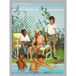 Ed Tadiello - Original Paperback Cover Art (c.1990).Published as part of a young adult / children's book series.Oil on canvas, approximately 30 x 22. Signed lower right. keywords: illustrator, illustration, painting, kids, humor Important notice: Heritage usually auctions material at the rate of 200-250 lots per hour. On some occasions eBay Live bid software or the Internet may not be able to keep up with the pace of the auction. We recommend placing a realistic absentee bid now as insurance to avoid disappointment. Occasionally the auctioneer may eliminate or reject an eBay Live bid, and the auctioneer may also reopen a lot after the close of the eBay live bidding (usually because we missed an audience bid), and may reject your bid even if it shows you as the winning bidder. By bidding via eBay Live, you agree that Heritage may award the lot to another bidder at its sole discretion under the circumstances described above or any other reasonable circumstances. Also please note that all Heritage lots purchased through eBay Live carry a 20% Buyer's Premium. Please make sure you read the Terms and Conditions before you bid.