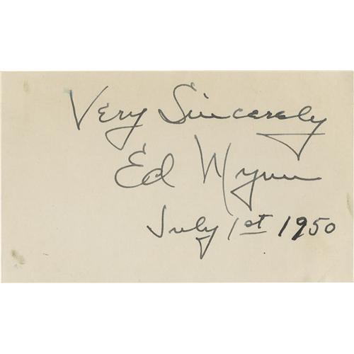 <B>Ed Wynn Autograph.</B></I> A 3" x 5" notecard inscribed, signed, and dated 1950 by the comedic actor in black ink, in Very Fine condition with mild tanning and some soiling.<BR><BR><b>Shipping:</b> Flat Material, Small (<a target="_blank" href="http://www.heritageauctions.com/common/shipping.php">view shipping information</a>) <BR><BR><B>Import