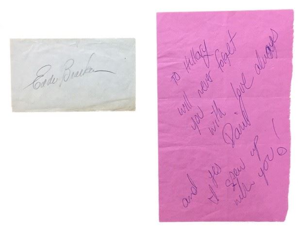 An autograph of the legendary comedic actor Eddie Bracken known for his film "Hail the Conquering Hero". Autographed in pencil on paper. Nice condition.