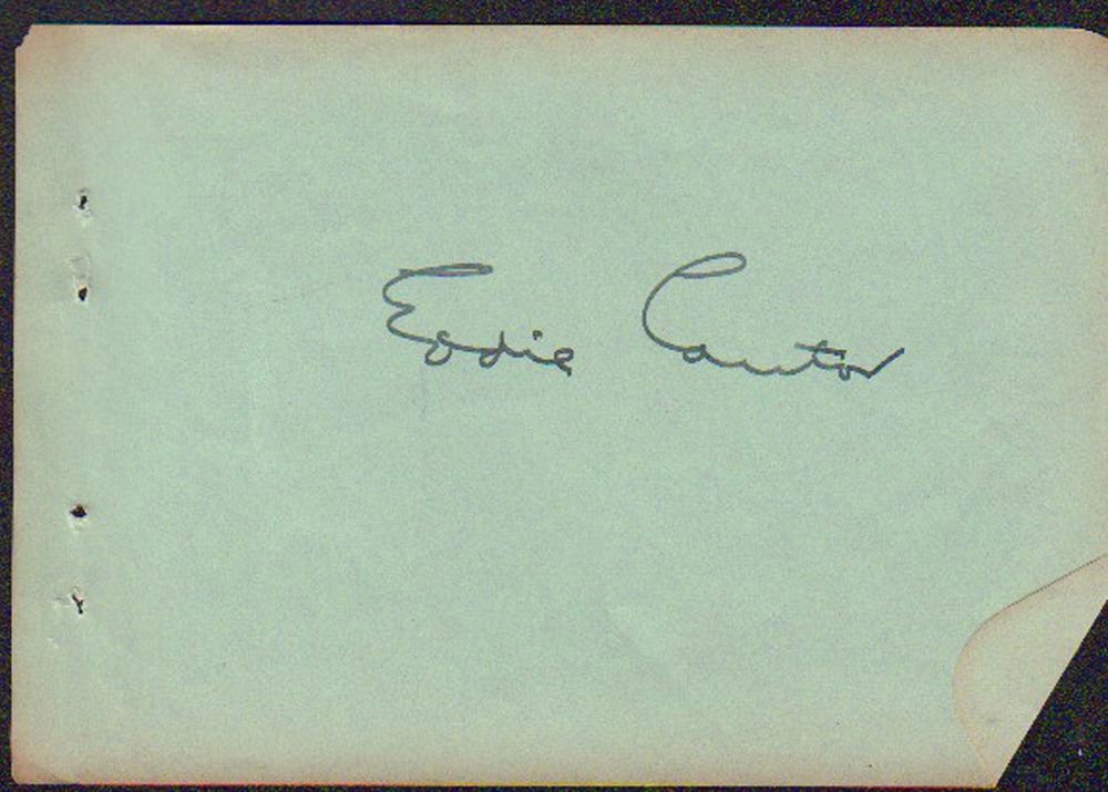 Autograph book page signed by Eddie Cantor. All items come with a certificate of authenticity good for the life of the piece.