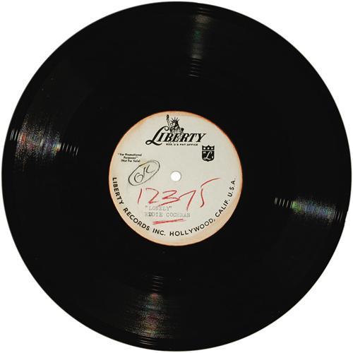 <B>Eddie Cochran Acetate Group of 2 (Liberty 1959-60).</B></I> Two 78 rpm acetates from the legendary rocker, including the one-sided "Teenage Heaven" (VG 5) and the two-sided "Sweetie Baby"/ "Lonely" (VG-EX 6). <I>From the GRT Collection</B></I>.<BR><BR><b>Shipping:</b> Recordings (<a target="_blank" href="http://www.heritageauctions.com/common/shipping.php">view shipping information</a>)
