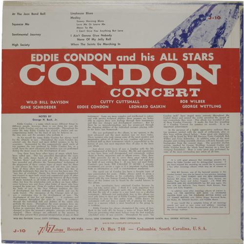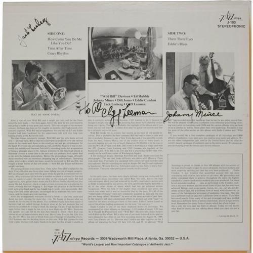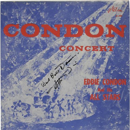 <B>Eddie Condon Autographed Record Group of 2.</B></I> "Condon Concert" autographed by Wild Bill Davison ,and "Jam Session" autographed by Wild Bill Davison, Jack Lesberg, Cliff Leeman, and Johnny Mince. <I>From the Al White Jazz Autographed Archive.</B></I><BR><BR><b>Shipping:</b> Recordings (<a target="_blank" href="http://www.heritageauctions.com/common/shipping.php">view shipping information</a>)