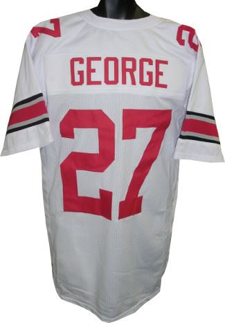 As a senior in the 1995 season, Eddie George rushed for a school record 1,927 yards and 24 touchdowns, an average of 152.2 yards per game. He won the Heisman Trophy in the closest vote in the history of the award at the time, beating University of Nebraska's Tommie Frazier by 264 ballots. Following the season, he was the first-round draft selection of the Houston Oilers (now the Tennessee Titans). This is a Eddie George Ohio State Buckeyes unsigned White unlicensed custom-prostyle TB jersey with twill stitched nameplate and numbers. perfect for autograph or to wear! Size XL