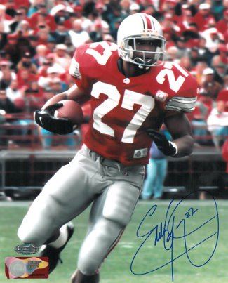 As a senior in the 1995 season, Eddie George rushed for a school record 1,927 yards and 24 touchdowns, an average of 152.2 yards per game. He won the Heisman Trophy in the closest vote in the history of the award at the time, beating University of Nebraska's Tommie Frazier by 264 ballots. Following the season, he was the first-round draft selection of the Houston Oilers (now the Tennessee Titans). Eddie George has hand autographed this Ohio State Buckeyes 16x20 Photo. Steiner Sports Hologram and Certificate of Authenticity.