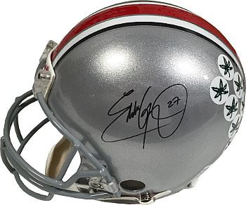 As a senior in the 1995 season, Eddie George rushed for a school record 1,927 yards and 24 touchdowns, an average of 152.2 yards per game. He won the Heisman Trophy in the closest vote in the history of the award at the time, beating University of Nebraska's Tommie Frazier by 264 ballots. Following the season, he was the first-round draft selection of the Houston Oilers (now the Tennessee Titans). Eddie George has hand autographed this Ohio State Buckeyes Full Size Riddell Proline Helmet. Steiner Sports Hologram and Certificate of Authenticity.