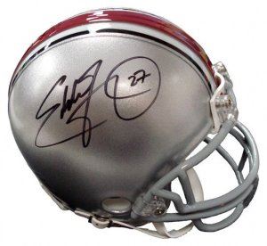 As a senior in the 1995 season, Eddie George rushed for a school record 1,927 yards and 24 touchdowns, an average of 152.2 yards per game. He won the Heisman Trophy in the closest vote in the history of the award at the time, beating University of Nebraska's Tommie Frazier by 264 ballots. Following the season, he was the first-round draft selection of the Houston Oilers (now the Tennessee Titans). Eddie George has hand autographed this Ohio State Buckeyes Mini Helmet #27. Schwartz Sports Hologram and Certificate of Authenticity from Athlon Sports Collectibles.