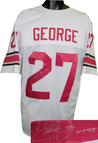 As a senior in the 1995 season, Eddie George rushed for a school record 1,927 yards and 24 touchdowns, an average of 152.2 yards per game. He won the Heisman Trophy in the closest vote in the history of the award at the time, beating University of Nebraska's Tommie Frazier by 264 ballots. Following the season, he was the first-round draft selection of the Houston Oilers (now the Tennessee Titans). Eddie George has hand autographed this White Ohio State Buckeyes Jersey with HT 95 inscription. Certificate of Authenticity from Athlon Sports.