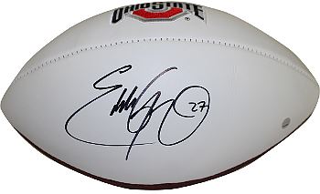 As a senior in the 1995 season, Eddie George rushed for a school record 1,927 yards and 24 touchdowns, an average of 152.2 yards per game. He won the Heisman Trophy in the closest vote in the history of the award at the time, beating University of Nebraska's Tommie Frazier by 264 ballots. Following the season, he was the first-round draft selection of the Houston Oilers (now the Tennessee Titans). Eddie George has hand autographed this Ohio State Buckeyes White Logo Football. (signed below panel) Steiner Sports Hologram and Certificate of Authenticity.