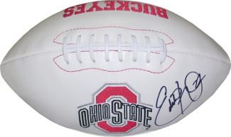 As a senior in the 1995 season, Eddie George rushed for a school record 1,927 yards and 24 touchdowns, an average of 152.2 yards per game. He won the Heisman Trophy in the closest vote in the history of the award at the time, beating University of Nebraska's Tommie Frazier by 264 ballots. Following the season, he was the first-round draft selection of the Houston Oilers (now the Tennessee Titans). Eddie George has hand autographed this Ohio State Buckeyes White Logo Football. Certificate of Authenticity from Athlon Sports.