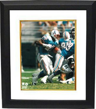 Eddie George was the first-round draft selection (14th overall pick) of the Houston Oilers (now the Tennessee Titans) in 1996 NFL Draft. George won the NFL Rookie of the Year award in 1996, and was the Oilers/Titans' starting tailback through 2003, never missing a start due to injury. He made the Pro Bowl four consecutive years (1997–2000), and assisted the Titans to a championship appearance in Super Bowl XXXIV. This is a color unautographed 8x10 Photo of Tennessee Oilers Superstar Eddie George. Custom White Mat and Premium Black Color Framed as shown.