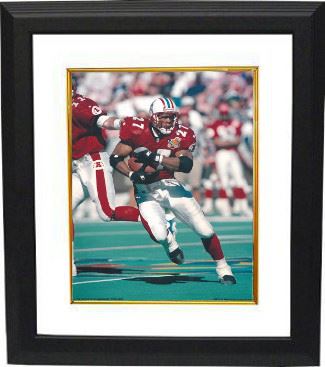 Eddie George was the first-round draft selection (14th overall pick) of the Houston Oilers (now the Tennessee Titans) in 1996 NFL Draft. George won the NFL Rookie of the Year award in 1996, and was the Oilers/Titans' starting tailback through 2003, never missing a start due to injury. He made the Pro Bowl four consecutive years (1997–2000), and assisted the Titans to a championship appearance in Super Bowl XXXIV. This is a color unautographed 8x10 Photo of Tennessee Oilers Superstar Eddie George. Custom White Mat and Premium Black Color Framed as shown.