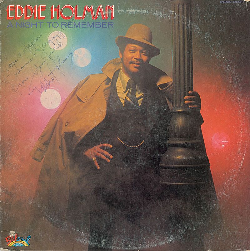 Singer (born 1946) known for his 1970 hit ‘Hey There Lonely Girl.’ A Night to Remember album signed and inscribed on the front cover in blue ballpoint, “Love & Happiness to Bonnie & Jerry my friends, from your friend Eddie Holman.” In fine condition, with an unobtrusive ‘ring of wear’ and discount punch to the lower left corner. The record is included.