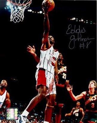 Eddie Johnson spent 17 seasons in the NBA and another season in the Euroleague midway through his career, playing nearly 1,200 games in the NBA, and who is notable for having scored the most career points of a player to never play in an NBA All-Star game. He is currently a broadcaster for Fox Sports Arizona. Eddie Johnson has hand signed this Houston Rockets 8x10 Photo. Tri-Star Hologram and Certificate of Authenticity from Athlon Sports.