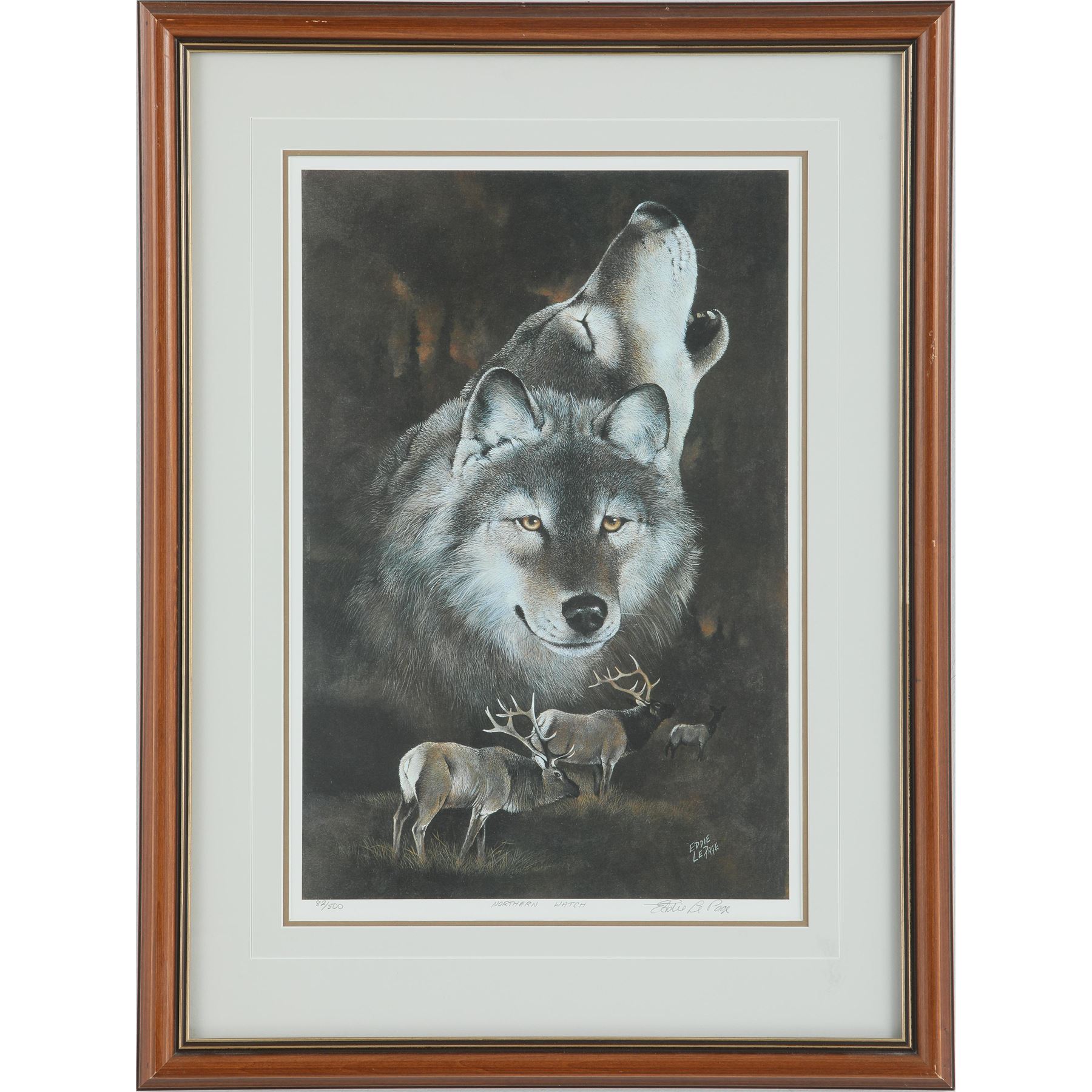 Eddie Le Page's "Northern Watch" limited edition print, signed and numbered 82/500. This piece has been professionally double matted, and custom framed under glass. Image- 18" x 12". Frame- 26 3/4" x 20".