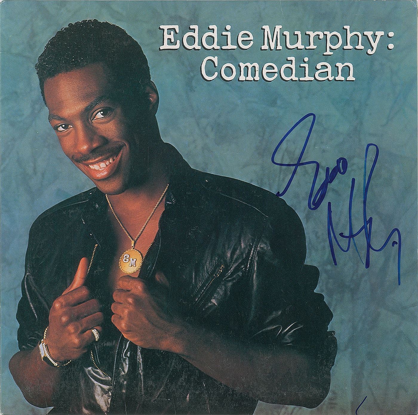 Comedian album signed on the front cover in blue felt tip by Murphy. In fine condition, with a light crease to the upper right. The record is included.