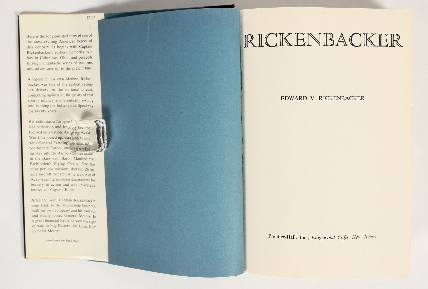 Autographed copy of 'Rickenbacker: An Autobiography' by Edward "Eddie" Rickenbacker, a highly decorated American pilot of WWI. He was known for achieving 26 aerial victories over the course of the war, becoming the U.S. military's most decorated and prolific flying ace of the era. Published 1967 by Prentice-Hall Inc. of Englewood Cliffs, New Jersey. Inscribed on front flyleaf. Hardback, 458 pages, fabric binding, original dustjacket. 6.5"x9.25"x2".