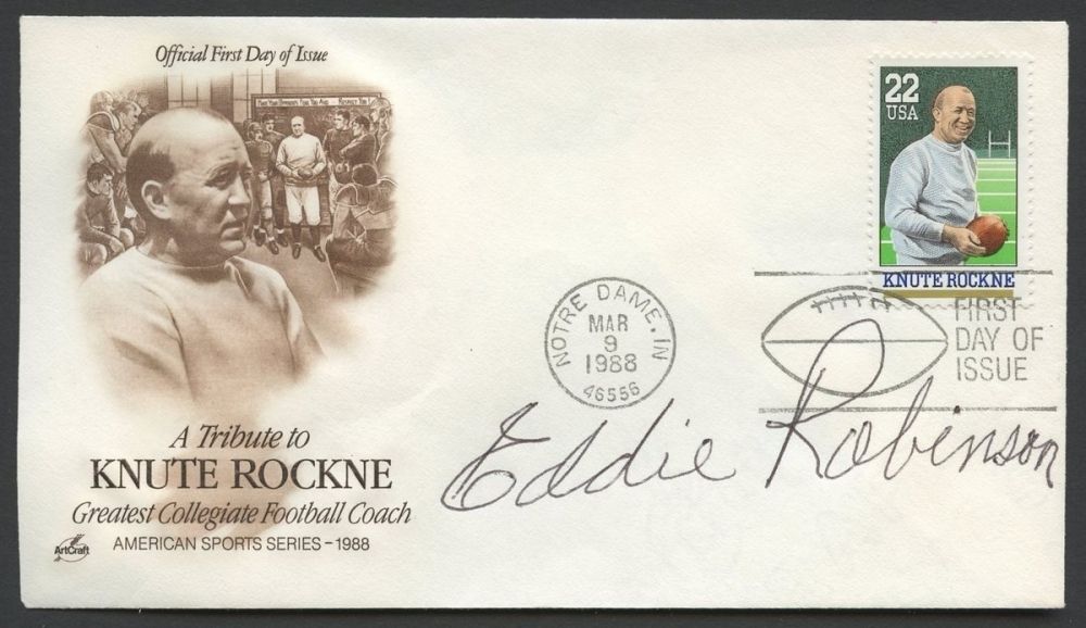 1988 first day issue cachet hand-signed in black ink by Eddie Robinson (D 2007). Autograph includes a Pristine Auction LOA and lifetime guarantee for authenticity purposes.