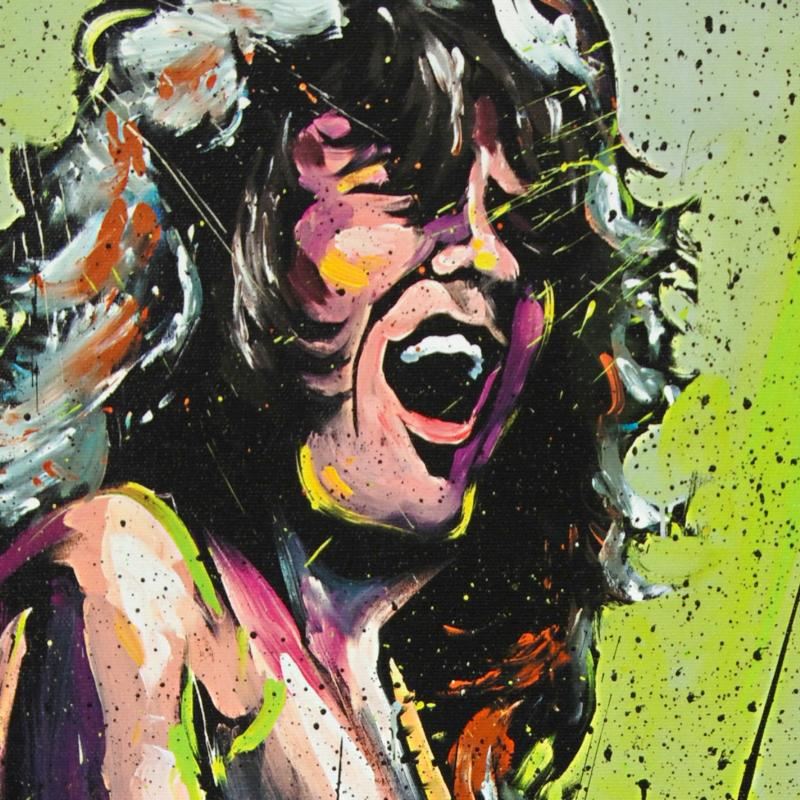 Combining his passions for music and art, David Garibaldi creates stunning visual poetry. "Eddie Van Halen (Eddie)" is a limited edition giclee on stretched canvas, numbered and bearing the artist's authorized signature. This piece comes gallery wrapped. Includes Certificate of Authenticity! Measures approx. 18" x 24" (image).