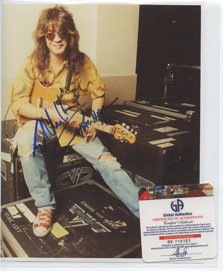 You are bidding on an 8x10 photo signed by Eddie Van Halen. This item comes with a Certificate of Authenticity guaranteed for the life of the piece. This item also comes Global authenticated