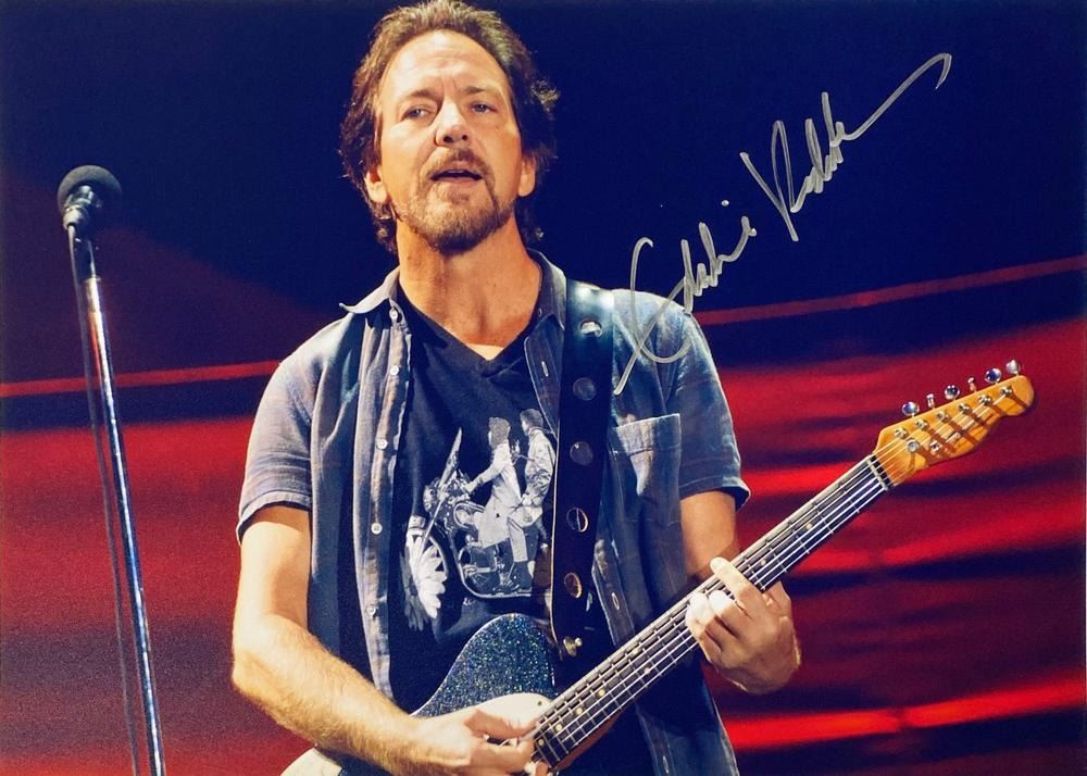 Eddie Vedder facsimile facsimile signed photo. 8x10 inches. This item is a reprint of an original autograph