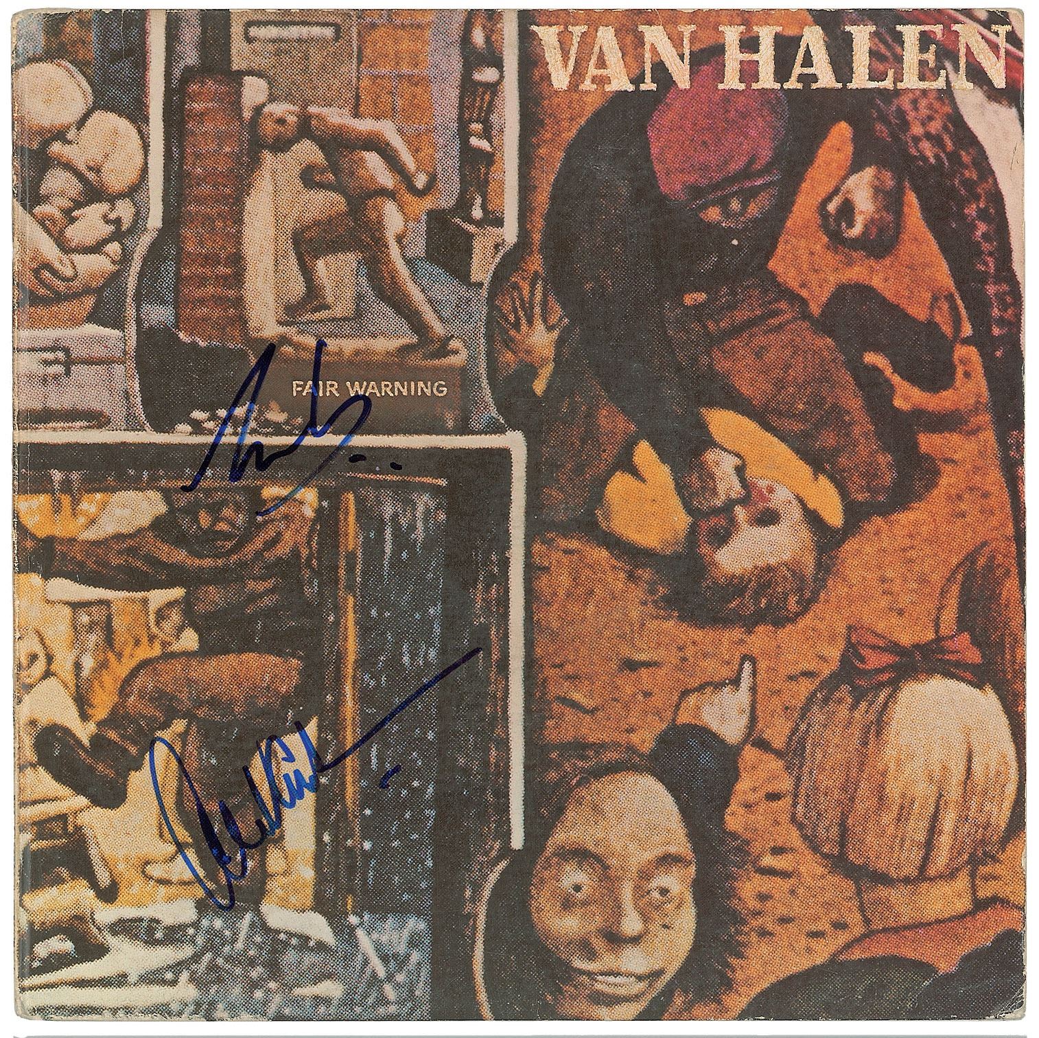 Fair Warning album signed on the front cover in blue felt tip by Eddie and Alex Van Halen. In fine condition. The record is included.