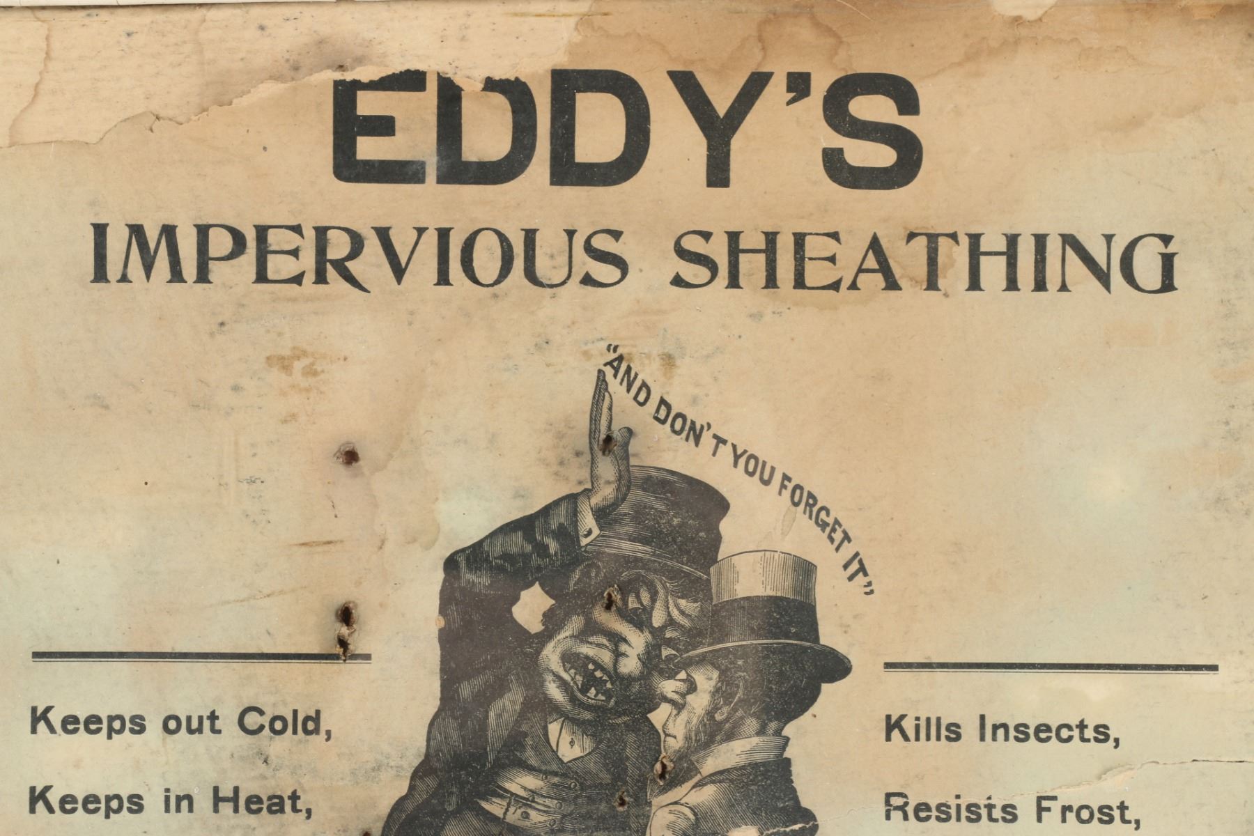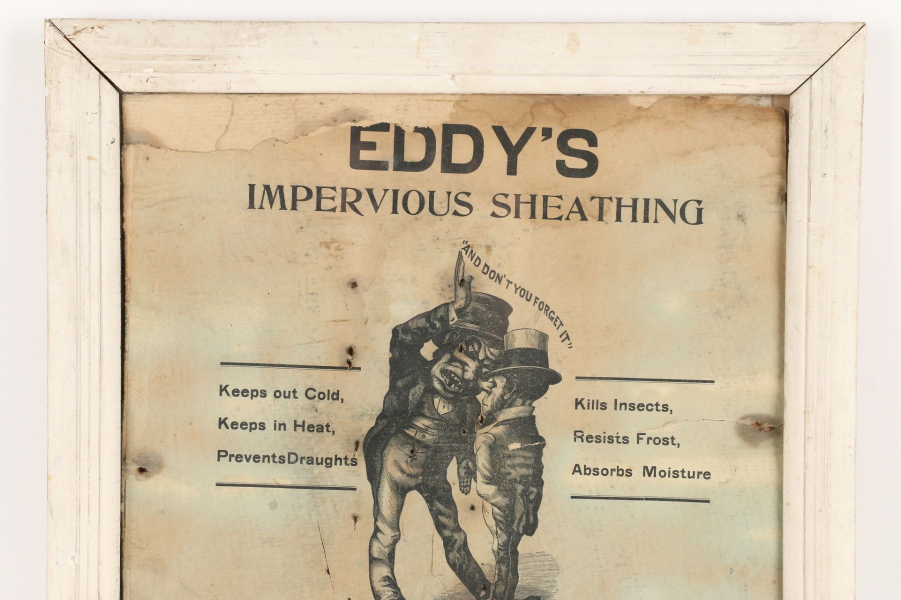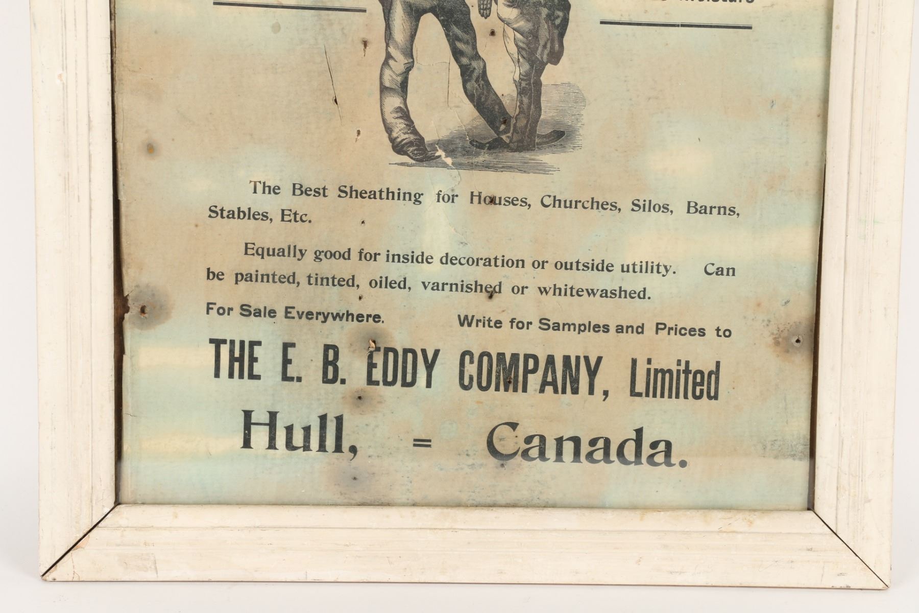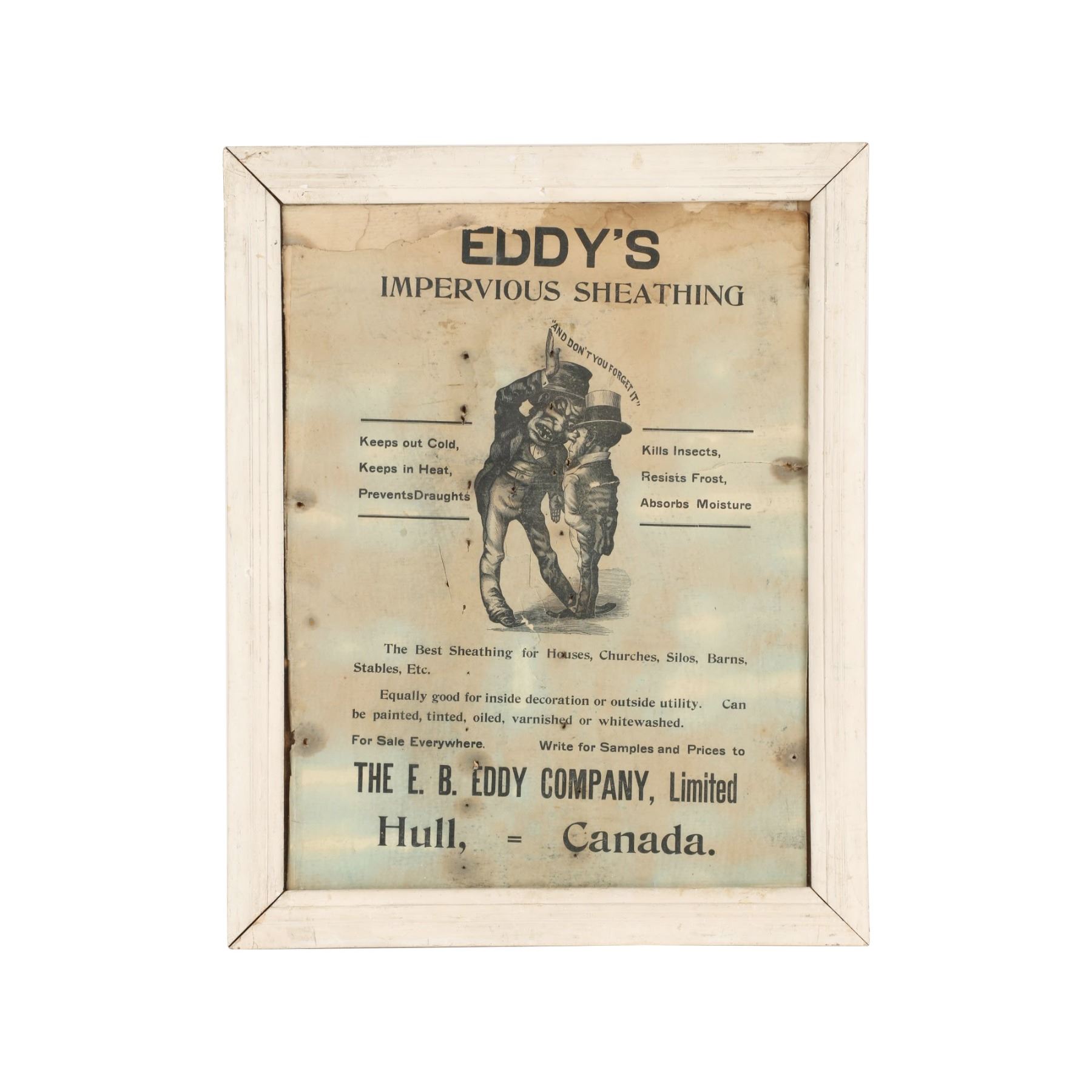 Canadian. Circa 1890s. From "The E. B. Eddy Company Limited, Hull, Canada". Framed paper-under-glass advertising poster. 17.5" x 13" Heavy edge wear, nail holes and mild soiling. $100-200.
