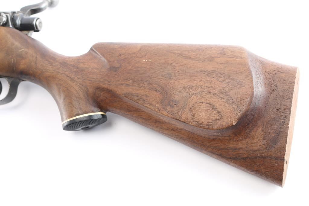 GOOD: Some minor replacement parts; metal smoothly rusted or lightly pitted in places, cleaned or re-blued; principal letters, numerals and design on metal legible; wood refinished, scratched bruised or minor cracks repaired; in good working order.