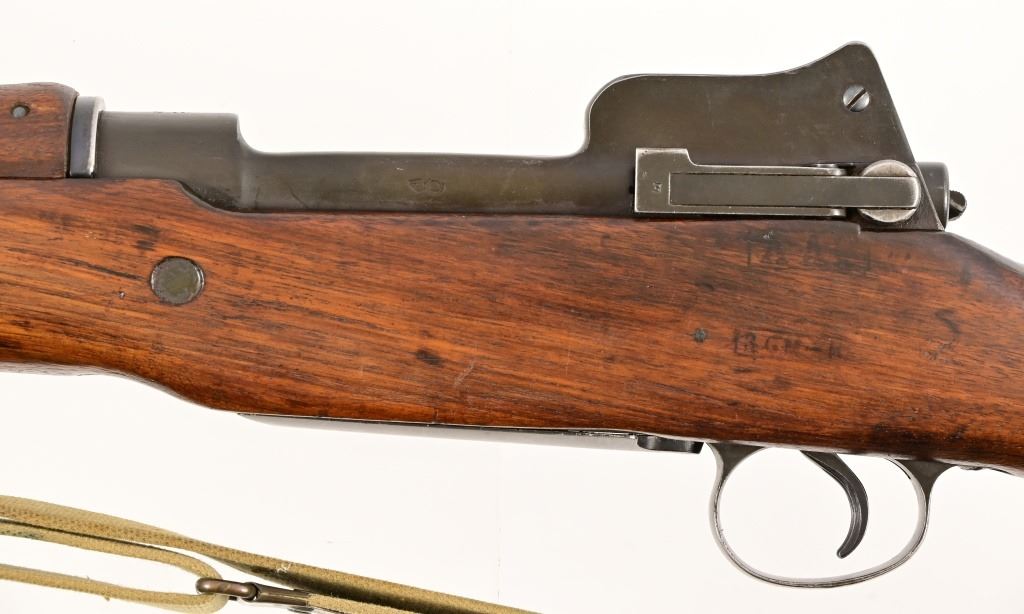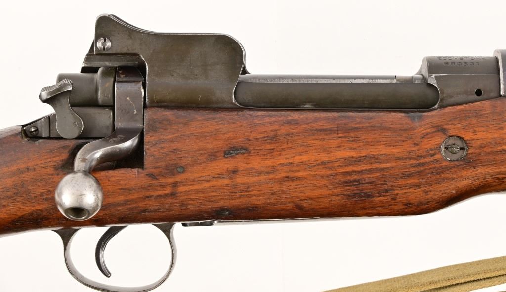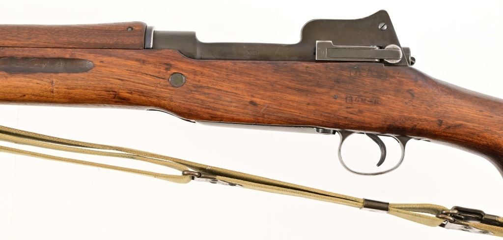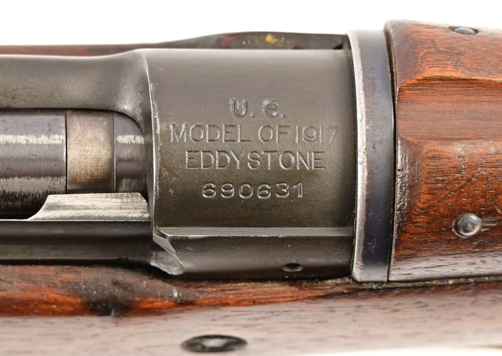 SN 690631. 26" barrel, good bore. Barrel stamped R, flaming bomb, 1918. Working action. Wood is solid with dings. Nice 1917 example. Modern.