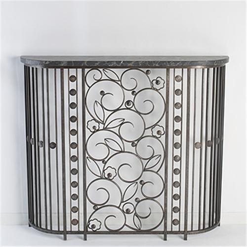 Edgar Brandt console France, c. 1920 wrought iron. marble 49"w x 9.5"d x 43"h Impressed signature to top right: [E Brandt].