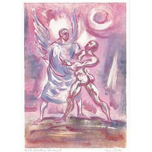 Edgar Britton (1901-1982) Monoprint, "Jacob Wresting the Angel", image size 10" x 6 3/4", pencil signed