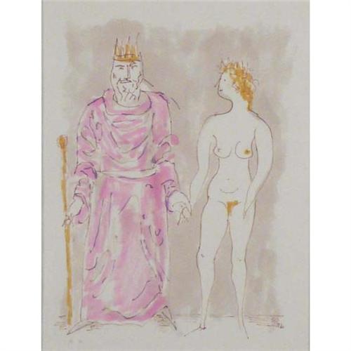 8141 Edgar Britton (1901-1982) Pen "King & Queen" Initialed lower right '76 10" x 7"