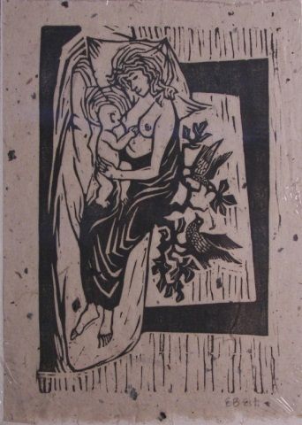 Edgar Britton, Woodblock Edgar Britton, Woodblock, Madonna and child, 8-3/4" x 6-1/4", Estate signed lower right,