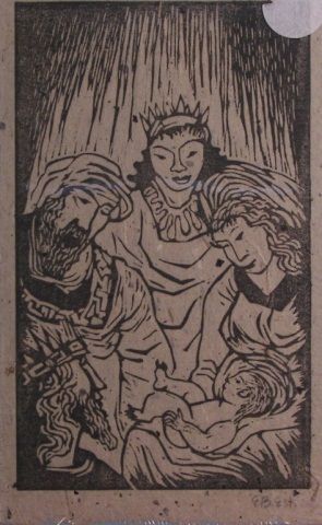 Edgar Britton, Woodblock Edgar Britton, Woodblock, Baby plus four, 8-1/4" x 5", Estate signed lower right,