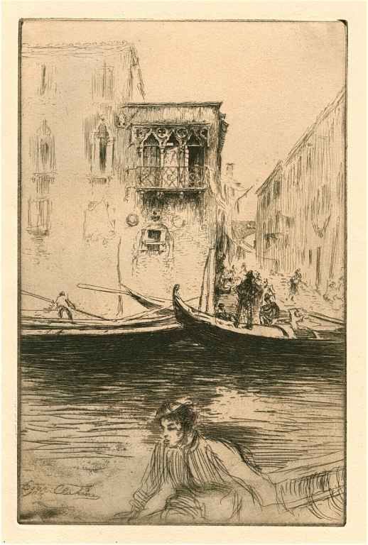 Edgar Chahine "Rio Cà Foscari, Venice" Original Etching - Catalogue Reference: Tabanelli 220. Executed In 1906 And Published By Gazette Des Beaux Arts, This Impression Is On Watermarked Laid Paper. Plate Size: 8 5/8 X 5 5/8 Inches (220 X 143mm). Signed By Chahine In The Plate - Professionally Framed & Matted - Comes With Certificate - -