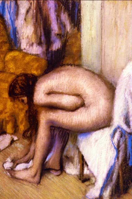 Artist: Degas - Title: After the Bath - Medium: Fine Art Reproduction Giclee on Archival Canvas - Image Size: Approximately 20 inches x 13.25 inches - Framed: Unframed on Unstretched Canvas - Edgar Degas was a French artist famous for his work in painting, sculpture, printmaking and drawing. He is regarded as one of the founders of Impressionism although he rejected the term, and preferred to be called a realist. A superb draftsman, he is especially identified with the subject of the dance, and over half of his works depict dancers. These display his mastery in the depiction of movement, as do his racecourse subjects and female nudes. His portraits are notable for their psychological complexity and depiction of human isolation. - Early in his career, he wanted to be a history painter, a calling for which he was well prepared by his rigorous academic training and close study of classic art. In his early thirties, he changed course, and by bringing the traditional methods of a history painter to bear on contemporary subject matter, he became a classical painter of modern life.