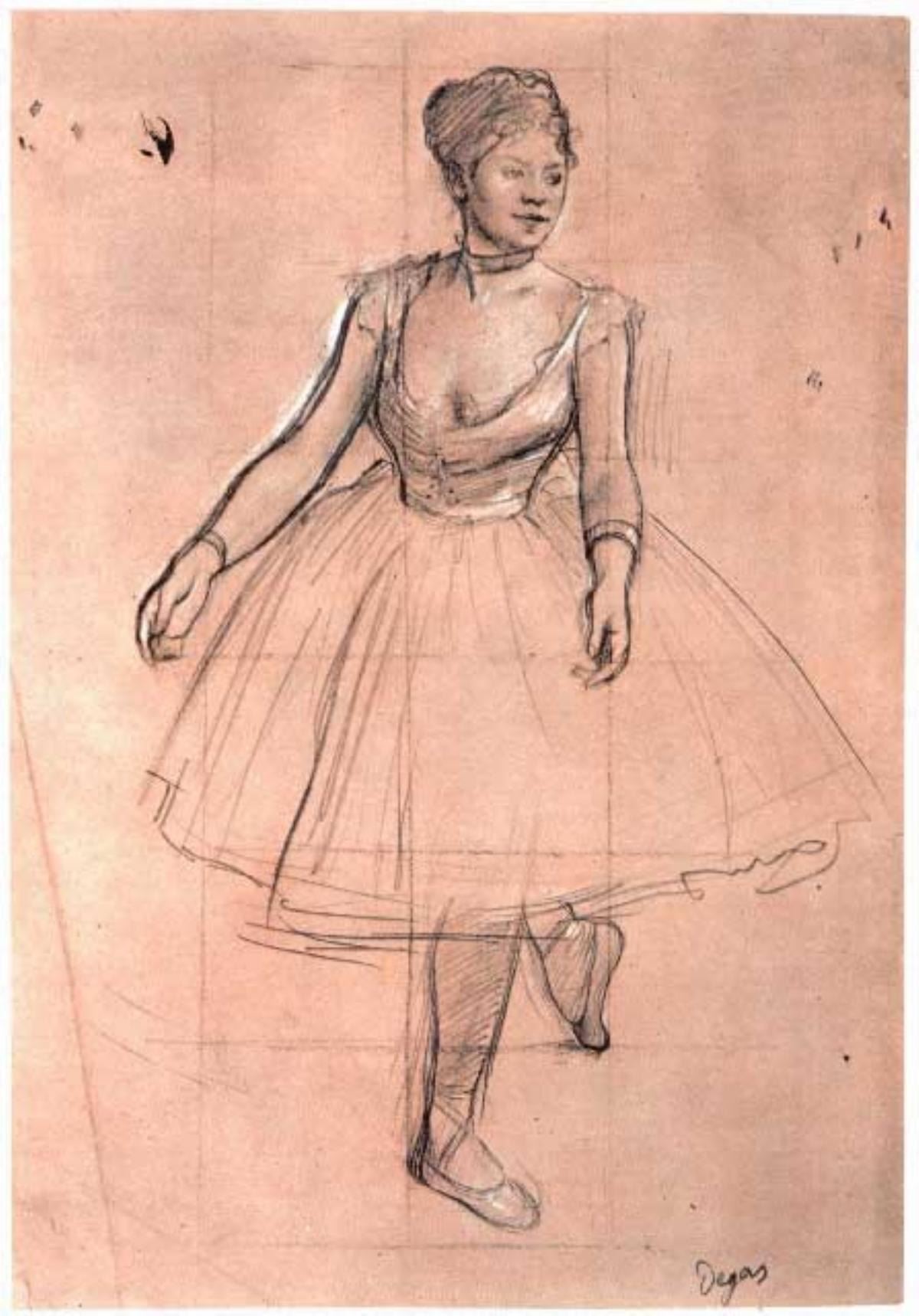 Artist: Degas - Title: Ballet Dancer In Three-Quarter Front View - Medium: Fine Art Reproduction Giclee on Archival Canvas - Image Size: Approximately 32 inches x 22.25 inches - Framed: Unframed on Unstretched Canvas - Edgar Degas was a French artist famous for his work in painting, sculpture, printmaking and drawing. He is regarded as one of the founders of Impressionism although he rejected the term, and preferred to be called a realist. A superb draftsman, he is especially identified with the subject of the dance, and over half of his works depict dancers. These display his mastery in the depiction of movement, as do his racecourse subjects and female nudes. His portraits are notable for their psychological complexity and depiction of human isolation. - Early in his career, he wanted to be a history painter, a calling for which he was well prepared by his rigorous academic training and close study of classic art. In his early thirties, he changed course, and by bringing the traditional methods of a history painter to bear on contemporary subject matter, he became a classical painter of modern life.