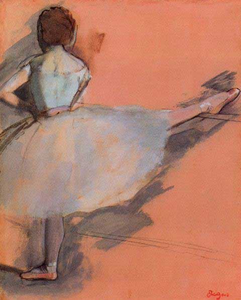 Artist: Degas - Title: Dancer at the Bar #1 - Medium: Fine Art Reproduction Giclee on Archival Canvas - Image Size: Approximately 32 inches x 25.75 inches - Framed: Unframed on Unstretched Canvas - Edgar Degas was a French artist famous for his work in painting, sculpture, printmaking and drawing. He is regarded as one of the founders of Impressionism although he rejected the term, and preferred to be called a realist. A superb draftsman, he is especially identified with the subject of the dance, and over half of his works depict dancers. These display his mastery in the depiction of movement, as do his racecourse subjects and female nudes. His portraits are notable for their psychological complexity and depiction of human isolation. - Early in his career, he wanted to be a history painter, a calling for which he was well prepared by his rigorous academic training and close study of classic art. In his early thirties, he changed course, and by bringing the traditional methods of a history painter to bear on contemporary subject matter, he became a classical painter of modern life.