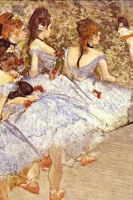 Artist: Degas - Title: Danseuses - Medium: Fine Art Reproduction Giclee on Archival Canvas - Image Size: Approximately 20 inches x 13.25 inches - Framed: Unframed on Unstretched Canvas - Edgar Degas was a French artist famous for his work in painting, sculpture, printmaking and drawing. He is regarded as one of the founders of Impressionism although he rejected the term, and preferred to be called a realist. A superb draftsman, he is especially identified with the subject of the dance, and over half of his works depict dancers. These display his mastery in the depiction of movement, as do his racecourse subjects and female nudes. His portraits are notable for their psychological complexity and depiction of human isolation. - Early in his career, he wanted to be a history painter, a calling for which he was well prepared by his rigorous academic training and close study of classic art. In his early thirties, he changed course, and by bringing the traditional methods of a history painter to bear on contemporary subject matter, he became a classical painter of modern life.