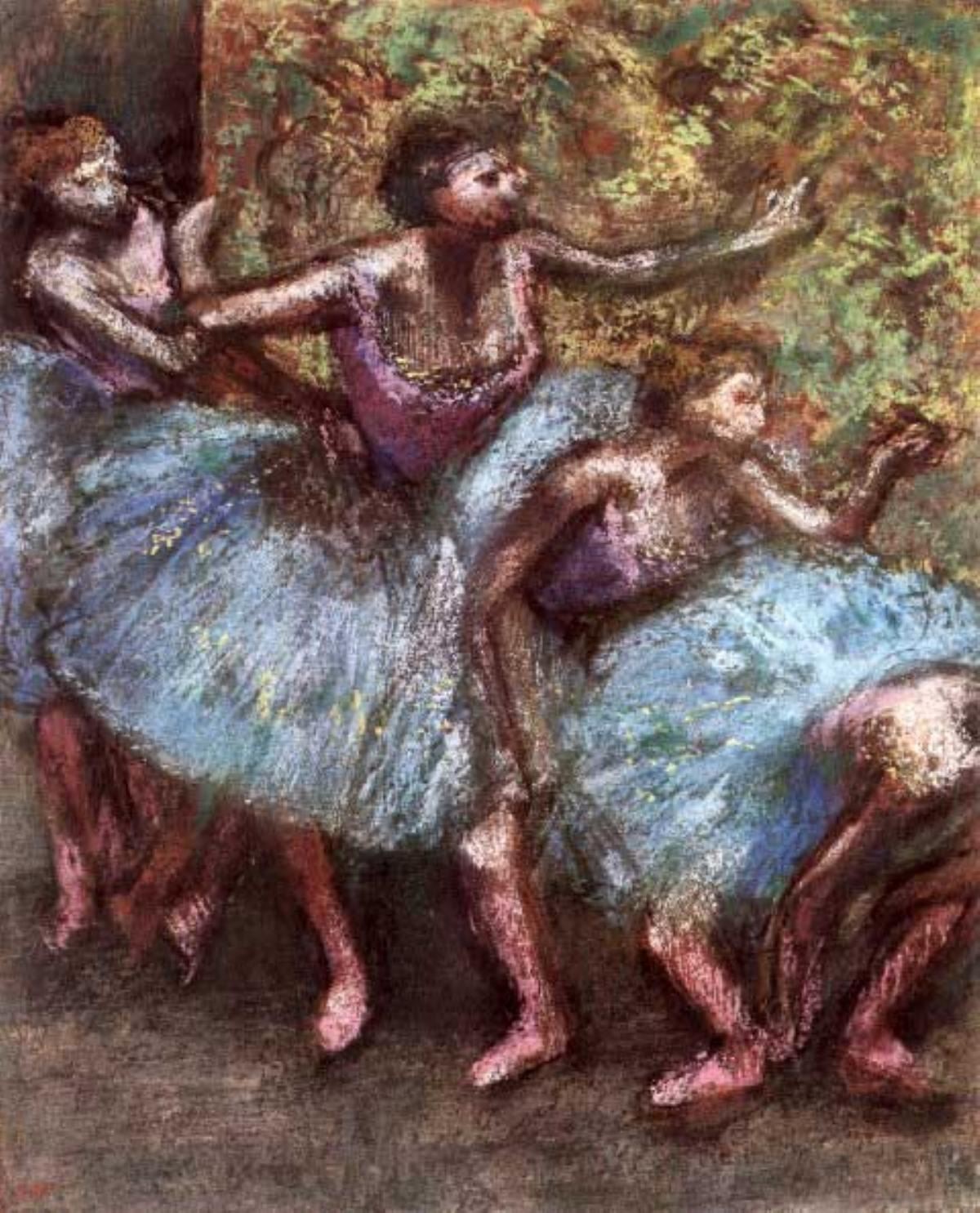 Artist: Degas - Title: Four Dancers Behind The Scenes #1 - Medium: Fine Art Reproduction Giclee on Archival Canvas - Image Size: Approximately 20 inches x 16.25 inches - Framed: Unframed on Unstretched Canvas - Edgar Degas was a French artist famous for his work in painting, sculpture, printmaking and drawing. He is regarded as one of the founders of Impressionism although he rejected the term, and preferred to be called a realist. A superb draftsman, he is especially identified with the subject of the dance, and over half of his works depict dancers. These display his mastery in the depiction of movement, as do his racecourse subjects and female nudes. His portraits are notable for their psychological complexity and depiction of human isolation. - Early in his career, he wanted to be a history painter, a calling for which he was well prepared by his rigorous academic training and close study of classic art. In his early thirties, he changed course, and by bringing the traditional methods of a history painter to bear on contemporary subject matter, he became a classical painter of modern life.