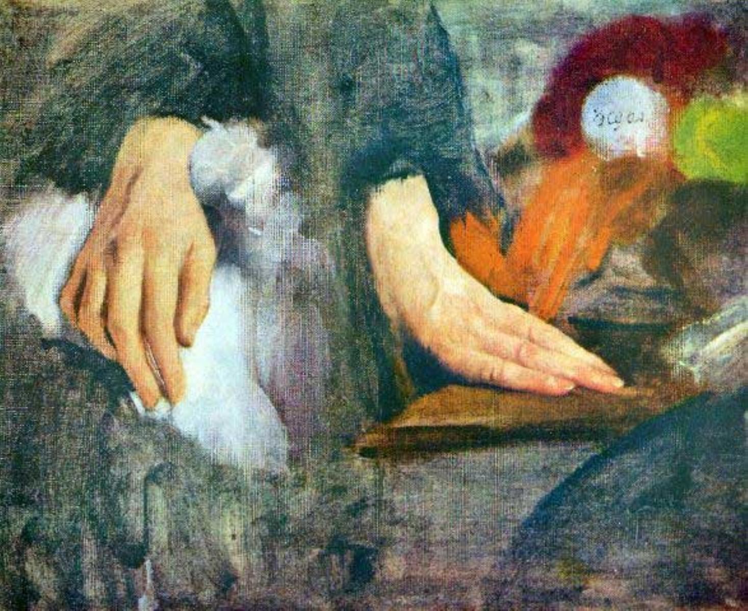 Artist: Degas - Title: Hand Study - Medium: Fine Art Reproduction Giclee on Archival Canvas - Image Size: Approximately 16.25 inches x 20 inches - Framed: Unframed on Unstretched Canvas - Edgar Degas was a French artist famous for his work in painting, sculpture, printmaking and drawing. He is regarded as one of the founders of Impressionism although he rejected the term, and preferred to be called a realist. A superb draftsman, he is especially identified with the subject of the dance, and over half of his works depict dancers. These display his mastery in the depiction of movement, as do his racecourse subjects and female nudes. His portraits are notable for their psychological complexity and depiction of human isolation. - Early in his career, he wanted to be a history painter, a calling for which he was well prepared by his rigorous academic training and close study of classic art. In his early thirties, he changed course, and by bringing the traditional methods of a history painter to bear on contemporary subject matter, he became a classical painter of modern life.