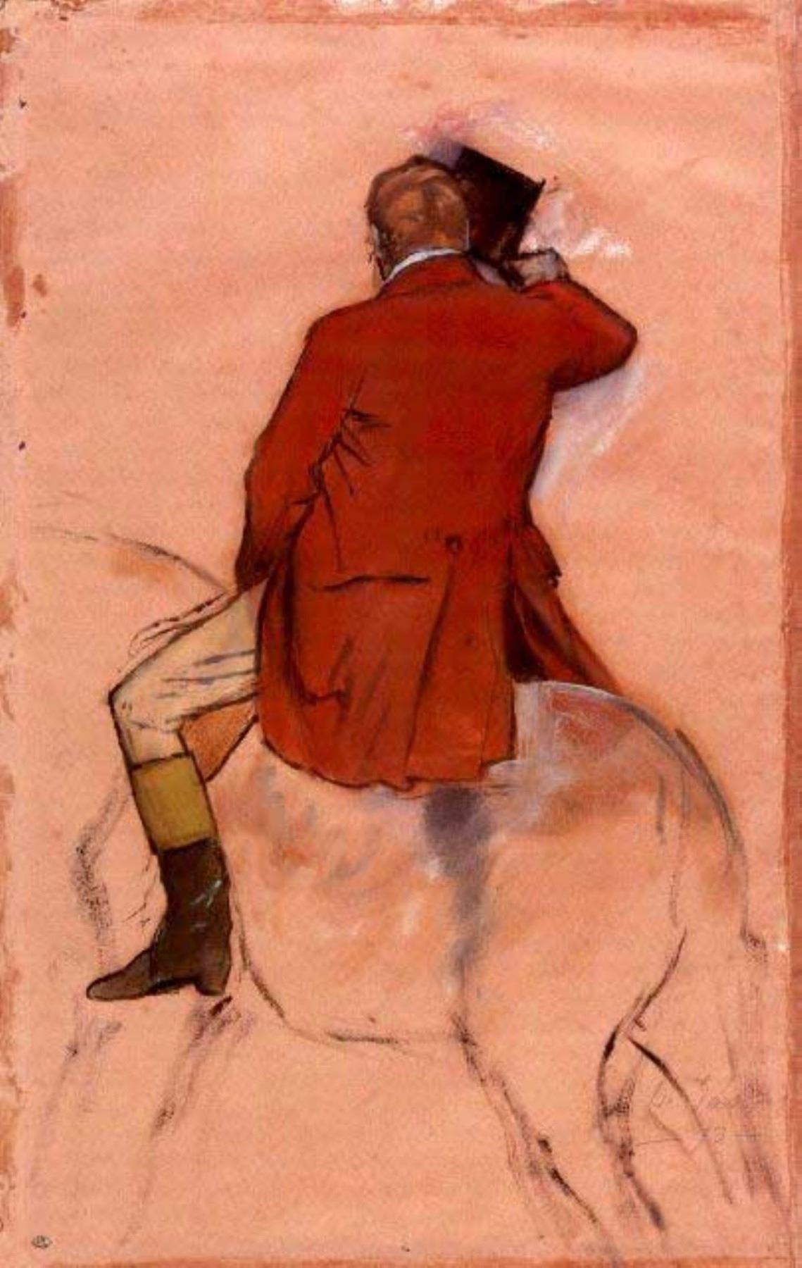 Artist: Degas - Title: Rider With Red Jacket - Medium: Fine Art Reproduction Giclee on Archival Canvas - Image Size: Approximately 32 inches x 20.25 inches - Framed: Unframed on Unstretched Canvas - Edgar Degas was a French artist famous for his work in painting, sculpture, printmaking and drawing. He is regarded as one of the founders of Impressionism although he rejected the term, and preferred to be called a realist. A superb draftsman, he is especially identified with the subject of the dance, and over half of his works depict dancers. These display his mastery in the depiction of movement, as do his racecourse subjects and female nudes. His portraits are notable for their psychological complexity and depiction of human isolation. - Early in his career, he wanted to be a history painter, a calling for which he was well prepared by his rigorous academic training and close study of classic art. In his early thirties, he changed course, and by bringing the traditional methods of a history painter to bear on contemporary subject matter, he became a classical painter of modern life.