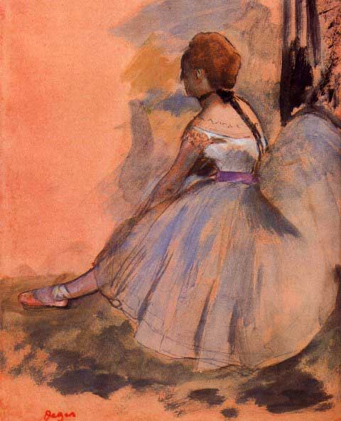Artist: Degas - Title: Sitting Dancer With Extended Left Leg - Medium: Fine Art Reproduction Giclee on Archival Canvas - Image Size: Approximately 32 inches x 25.75 inches - Framed: Unframed on Unstretched Canvas - Edgar Degas was a French artist famous for his work in painting, sculpture, printmaking and drawing. He is regarded as one of the founders of Impressionism although he rejected the term, and preferred to be called a realist. A superb draftsman, he is especially identified with the subject of the dance, and over half of his works depict dancers. These display his mastery in the depiction of movement, as do his racecourse subjects and female nudes. His portraits are notable for their psychological complexity and depiction of human isolation. - Early in his career, he wanted to be a history painter, a calling for which he was well prepared by his rigorous academic training and close study of classic art. In his early thirties, he changed course, and by bringing the traditional methods of a history painter to bear on contemporary subject matter, he became a classical painter of modern life.