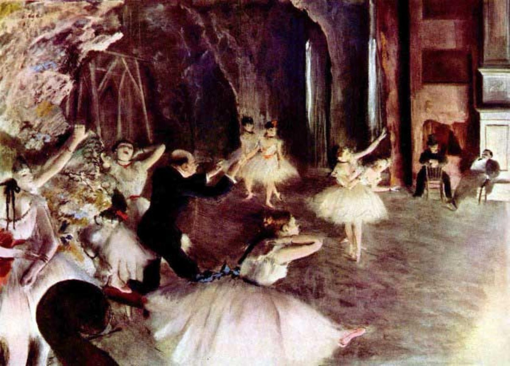 Artist: Degas - Title: Stage Probe - Medium: Fine Art Reproduction Giclee on Archival Canvas - Image Size: Approximately 14.25 inches x 20 inches - Framed: Unframed on Unstretched Canvas - Edgar Degas was a French artist famous for his work in painting, sculpture, printmaking and drawing. He is regarded as one of the founders of Impressionism although he rejected the term, and preferred to be called a realist. A superb draftsman, he is especially identified with the subject of the dance, and over half of his works depict dancers. These display his mastery in the depiction of movement, as do his racecourse subjects and female nudes. His portraits are notable for their psychological complexity and depiction of human isolation. - Early in his career, he wanted to be a history painter, a calling for which he was well prepared by his rigorous academic training and close study of classic art. In his early thirties, he changed course, and by bringing the traditional methods of a history painter to bear on contemporary subject matter, he became a classical painter of modern life.